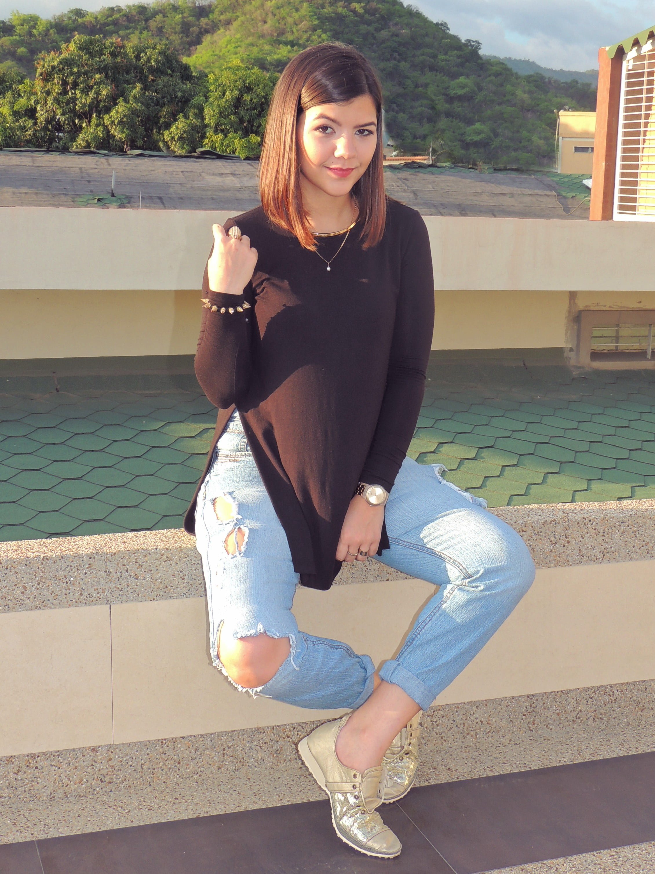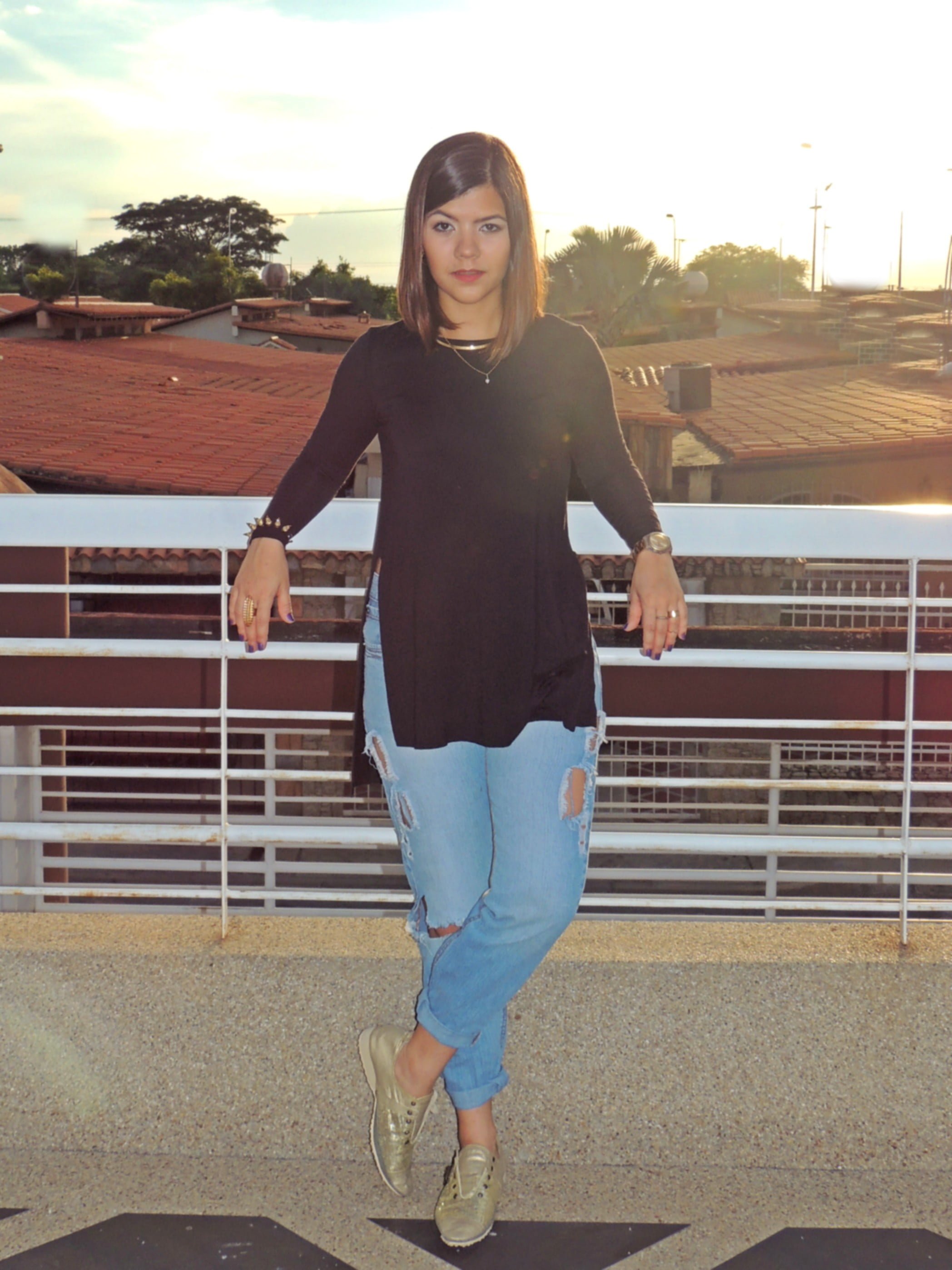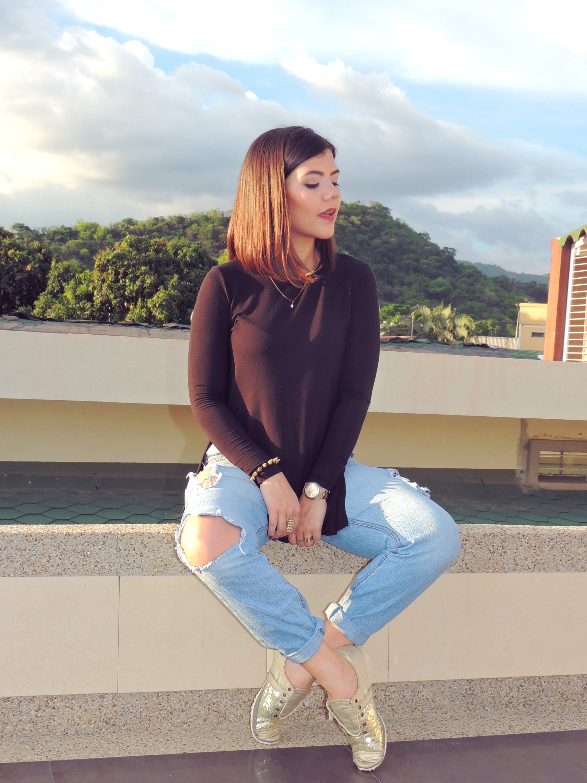 Este look sale básicamente de las ganas de estar cómoda pero lucir bien (que es lo que casi siempre busco) entonces opté por unos boyfriend jeans y suéter negro con aberturas laterales pero faltaba algo, me faltaba un toque cosa que por lo general resuelvo usando zapatos diferentes a los que uso regularmente y por lo general los veo como «para ocasiones especiales» y cuando me doy cuenta ¡no los uso nunca! Y se que a todos les pasa, cuando la verdad es que hay que sacar todo lo que tenemos empolvado en el closet porque la ocasión especial es hoy, es siempre.?